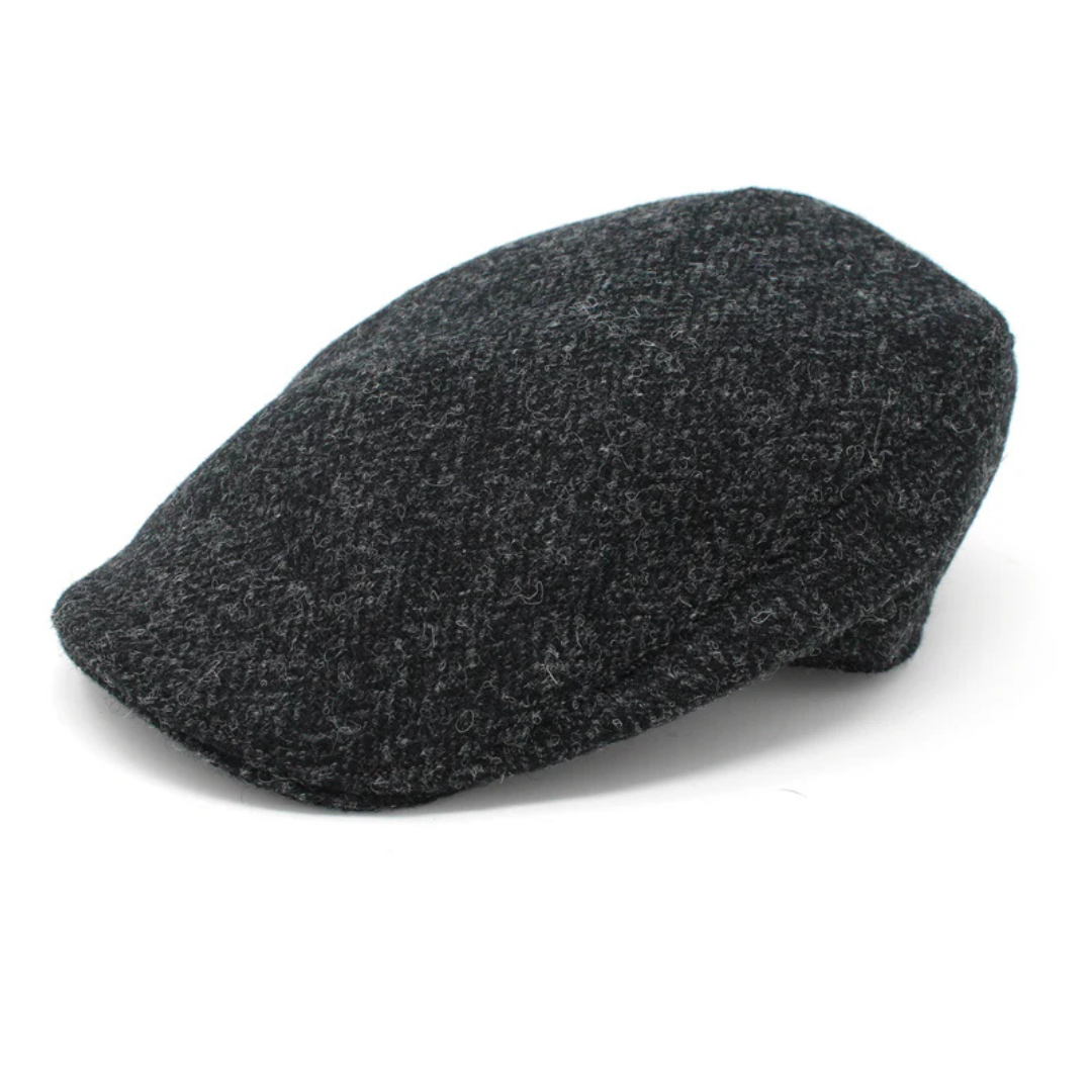 The Harris Tweed tailored Donegal touring flat cap by Hanna Hats has a stitched-down peak and deep back and is ideal for those who enjoy a secure fit and a streamlined silhouette.