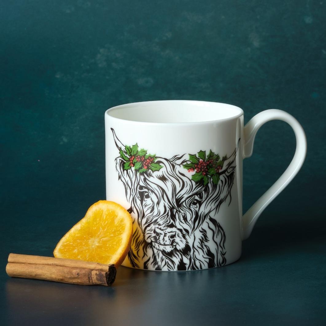 - Features a reproduction of Holly the Highland Cow dressed for the holidays