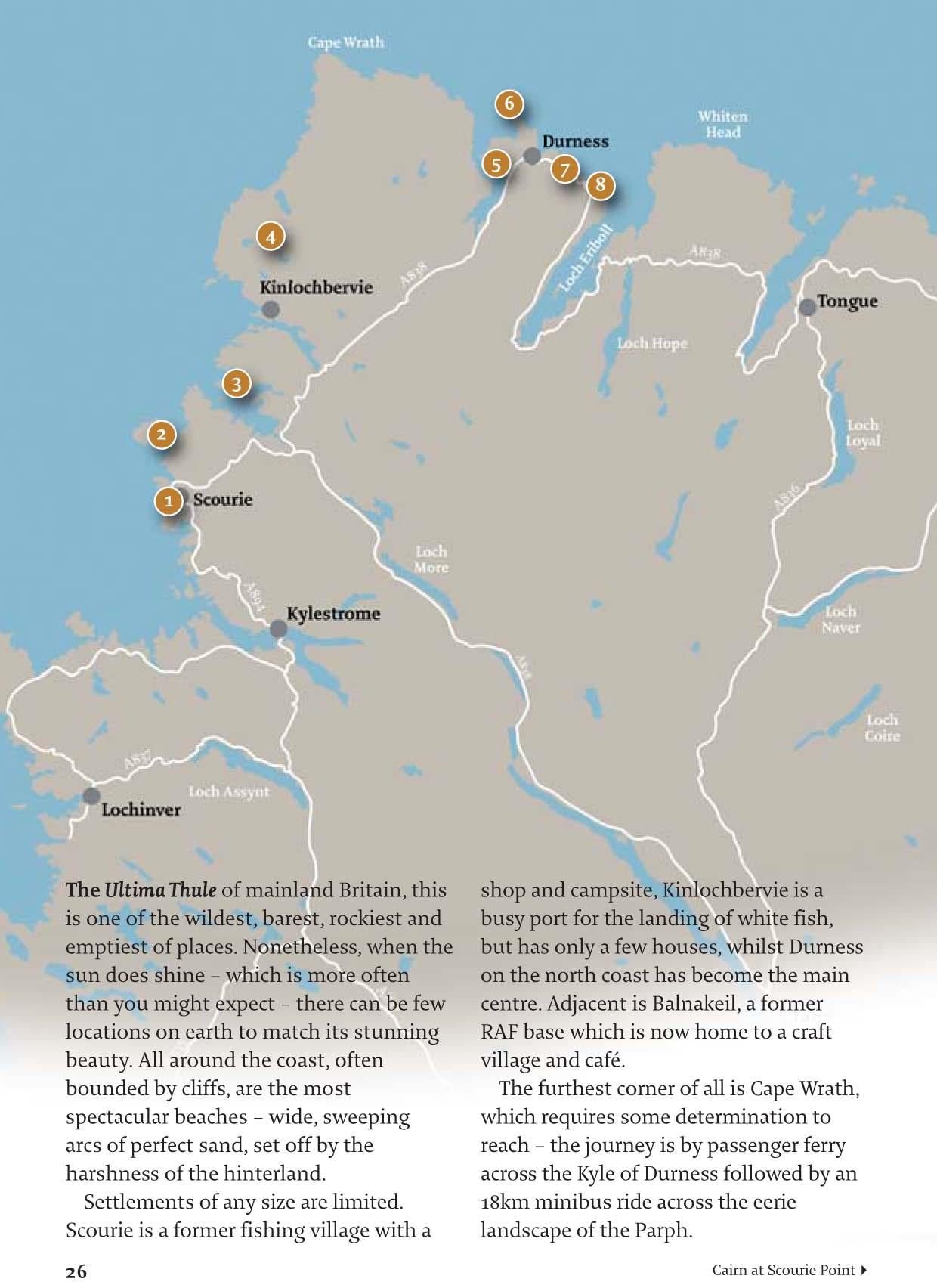 - Scenery takes centre stage in Caithness and Sutherland right in the far north of Britain. There is something for everyone, with dramatic sea cliffs, expansive beaches of white sand, vast moorlands dotted with watery pools and amazing mountains rising steeply to provide a playground for walkers and climbers. Against this backdrop, the human story of ancient societies, Norse invaders and, more recently, the Highland Clearances has left its mark on the landscape to be discovered by modern-day visitors.